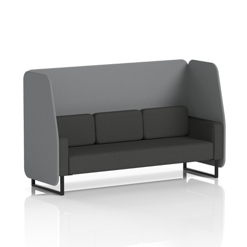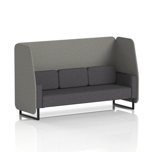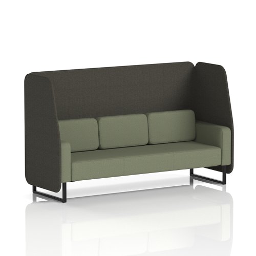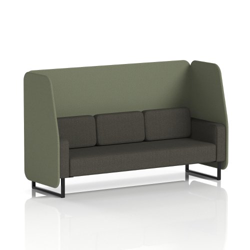 Brixworth 3 Seater Open Booth With Black Legs In Rivet Fabric - Burnish Panels And Olive Sofa