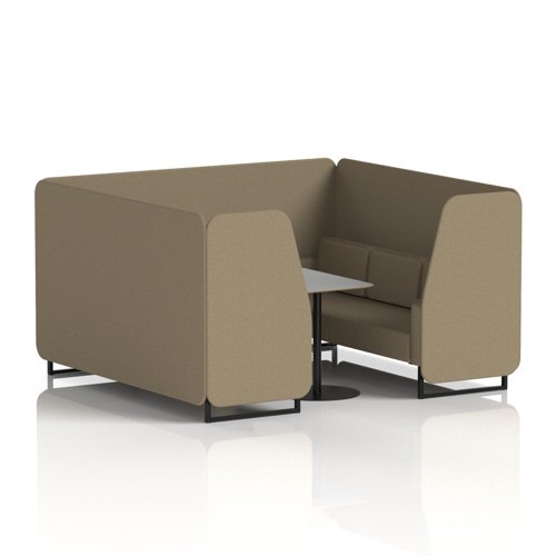 Brixworth 2 Seater Booth With Black Legs And Grey Table With Black Leg In Main Line Flax Fabric - Bank Panels And Sofa